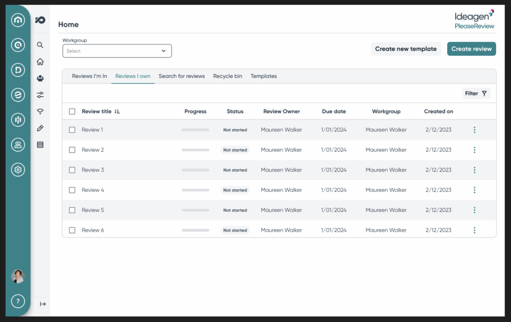 Results: Users navigated the prompts with ease. The majority agreed that the flow remained consistent with the previous design, requiring only a brief adjustment to the updated UI, which they found appealing and well-received. However, users preferred one table with different tabs to navigate with naming conventions like the legacy product; ‘reviews I own’, ‘reviews I’m in’ and templates.